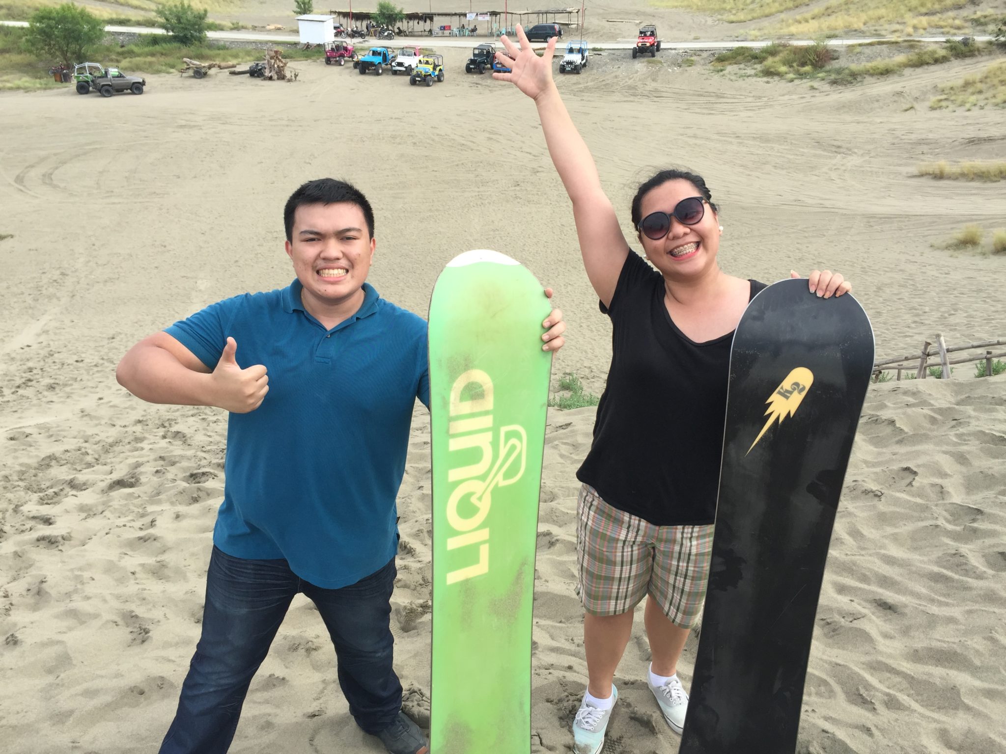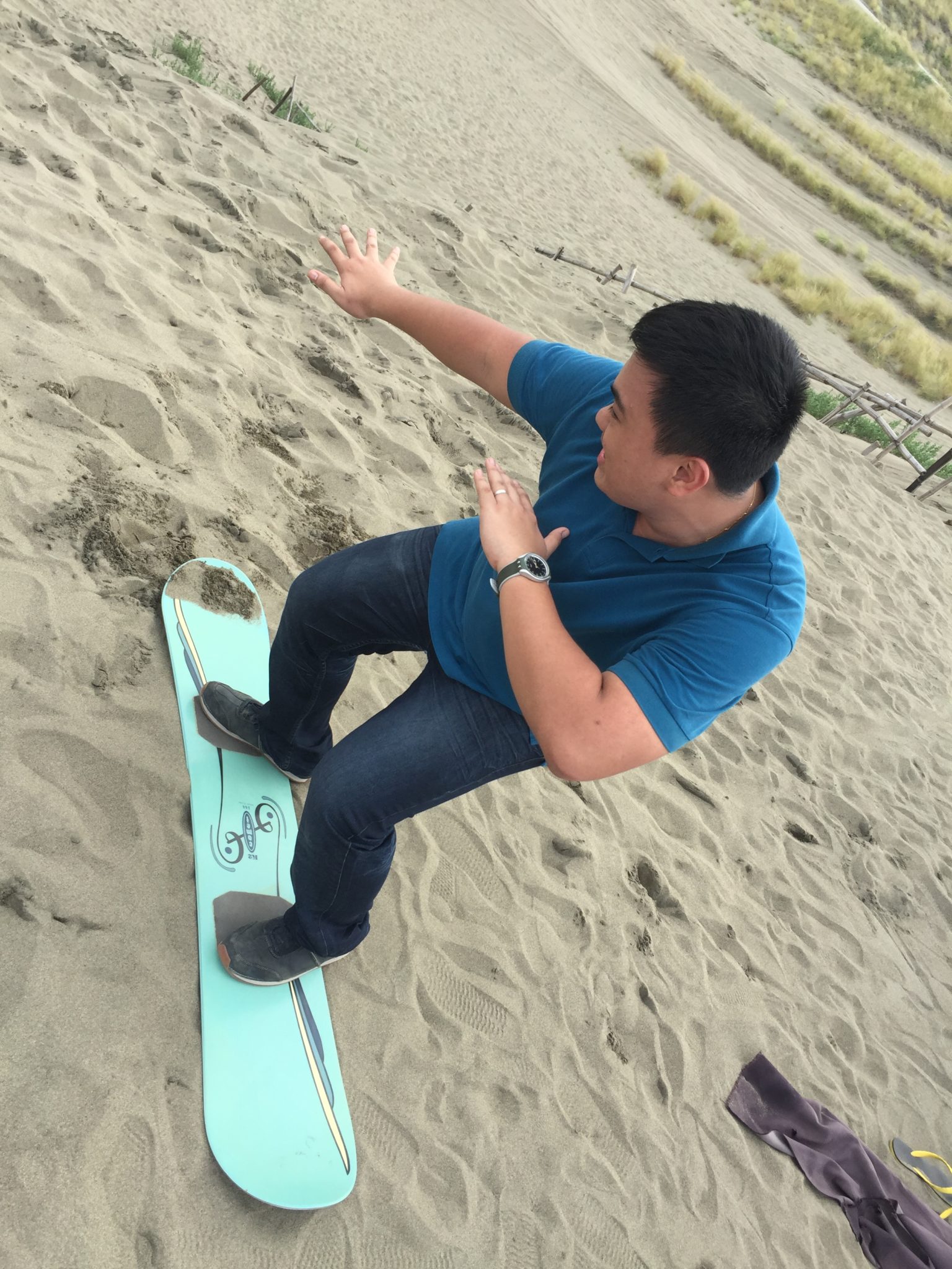 After riding the 4×4, we went Sandboarding! That’s right, using a snowboard(?) (sandboard?? haha) to ride the sand. Hehe. Here we are doing the sandboarding thing and more in pictures!