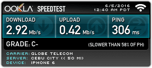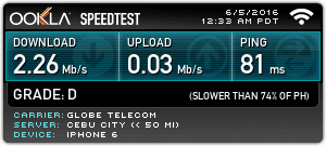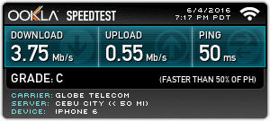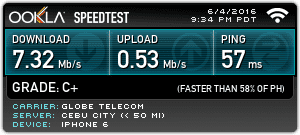 This one was pretty direct. Since there is a Globe cell tower right outside the house, I figured that Globe would really get a very high speed boost. Lo and behold, I was right.