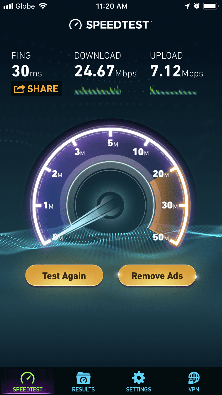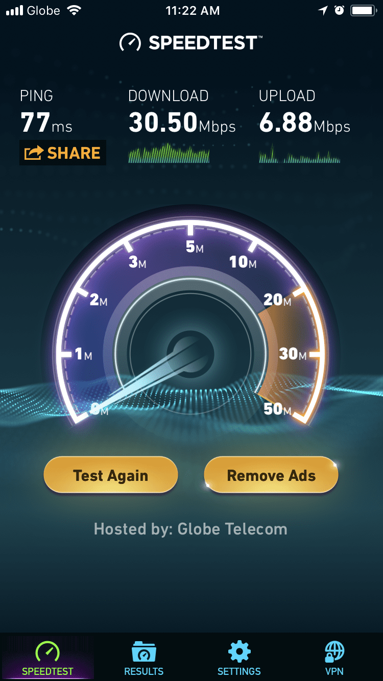 With that out of the way, here are some of the results when using the Speedtest app: (this was done in Mango Avenue, Cebu City near Rivergate)